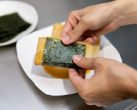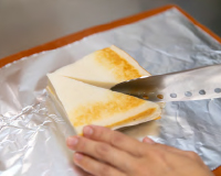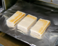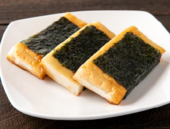 アルミホイルを優しく丸めて広げたら、その上に角焼または白焼をのせ、トースターで焼き色がつくまで焼きます。