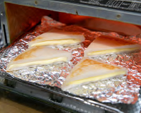 オーブントースターでアルミホイルに乗せ、軽く焼き色が付くまで焼く。